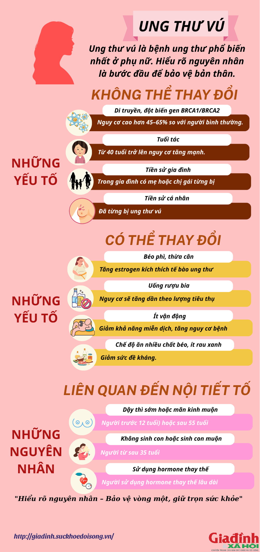 Cũng theo BS Quang, nguyên nhân và các yếu tố nguy cơ của ung thư vú cũng rất đa dạng: