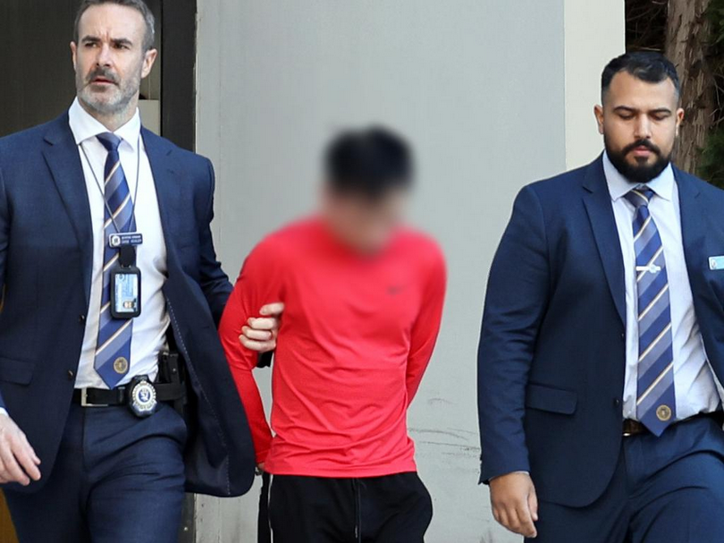 Tên nghi can bị bắt và cho áp giải đến đồn cảnh sát ở Bankstown, Úc, hôm 28/8/2025. (Ảnh: NSW Police)