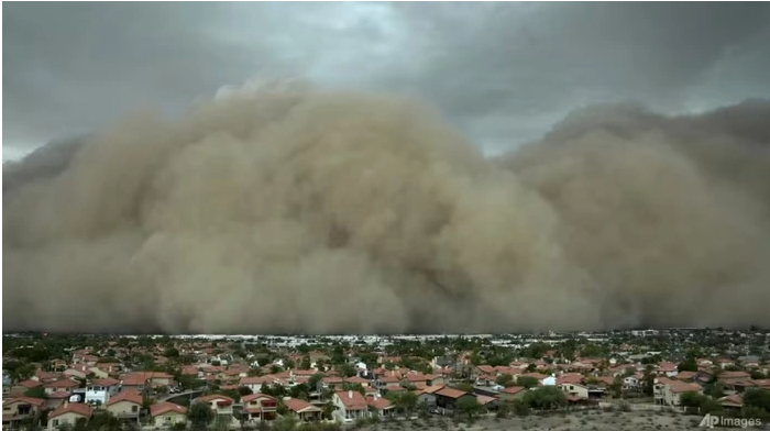 AP giải thích hiện tượng bão bụi (haboob) do gió mạnh từ giông bão tạo ra, thường xảy ra tại các vùng bằng phẳng, khô cằn.