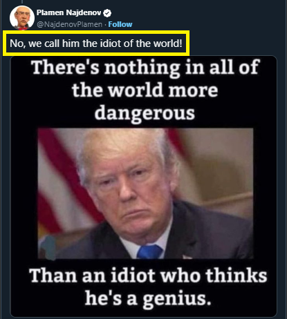 "Không, chúng tôi gọi ông ta là kẻ ngốc nhất thế giới!"