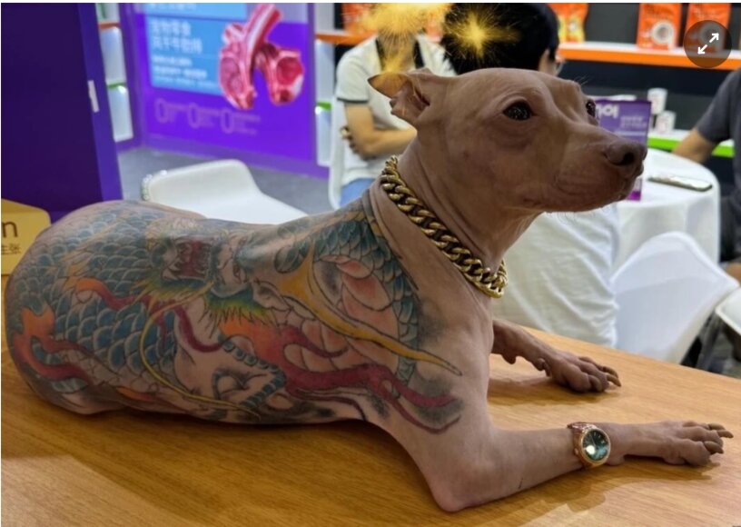 Tại Hội chợ thú cưng Châu Á ở Thượng Hải (Trung Quốc), sự xuất hiện của một chú chó không lông được xăm trổ đầy người đã làm dấy lên cuộc tranh luận và nhận về nhiều chỉ trích.