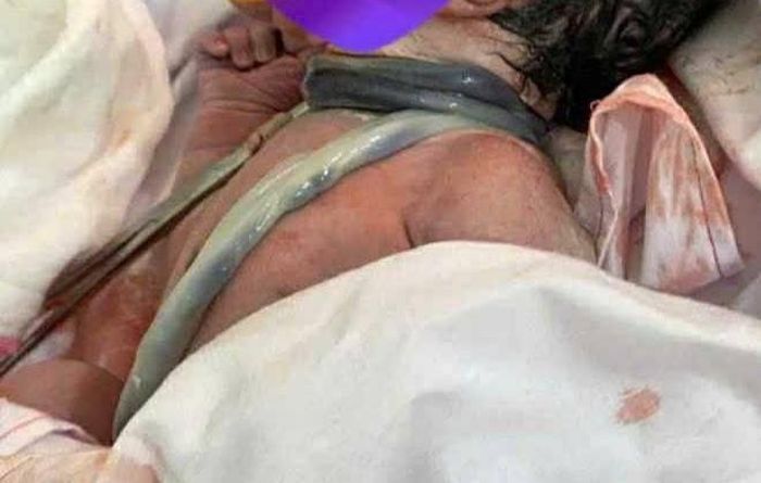 Trong suốt quá trình vượt cạn, ê-kíp trực bao gồm bác sĩ và nữ hộ sinh đã liên tục theo dõi nhịp tim thai, bảo đảm an toàn cho cả mẹ và bé. Đến thời điểm sinh, khi bé trai cất tiếng khóc đầu tiên, các bác sĩ bất ngờ phát hiện dây rốn quấn quanh cổ tới 6 vòng.