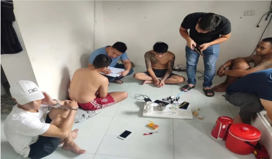 Lực lượng Công an bắt quả tang các đối tượng đang tổ chức sử dụng trái phép chất ma tuý tại thôn Công Luận 2, xã Văn Giang, tỉnh Hưng Yên