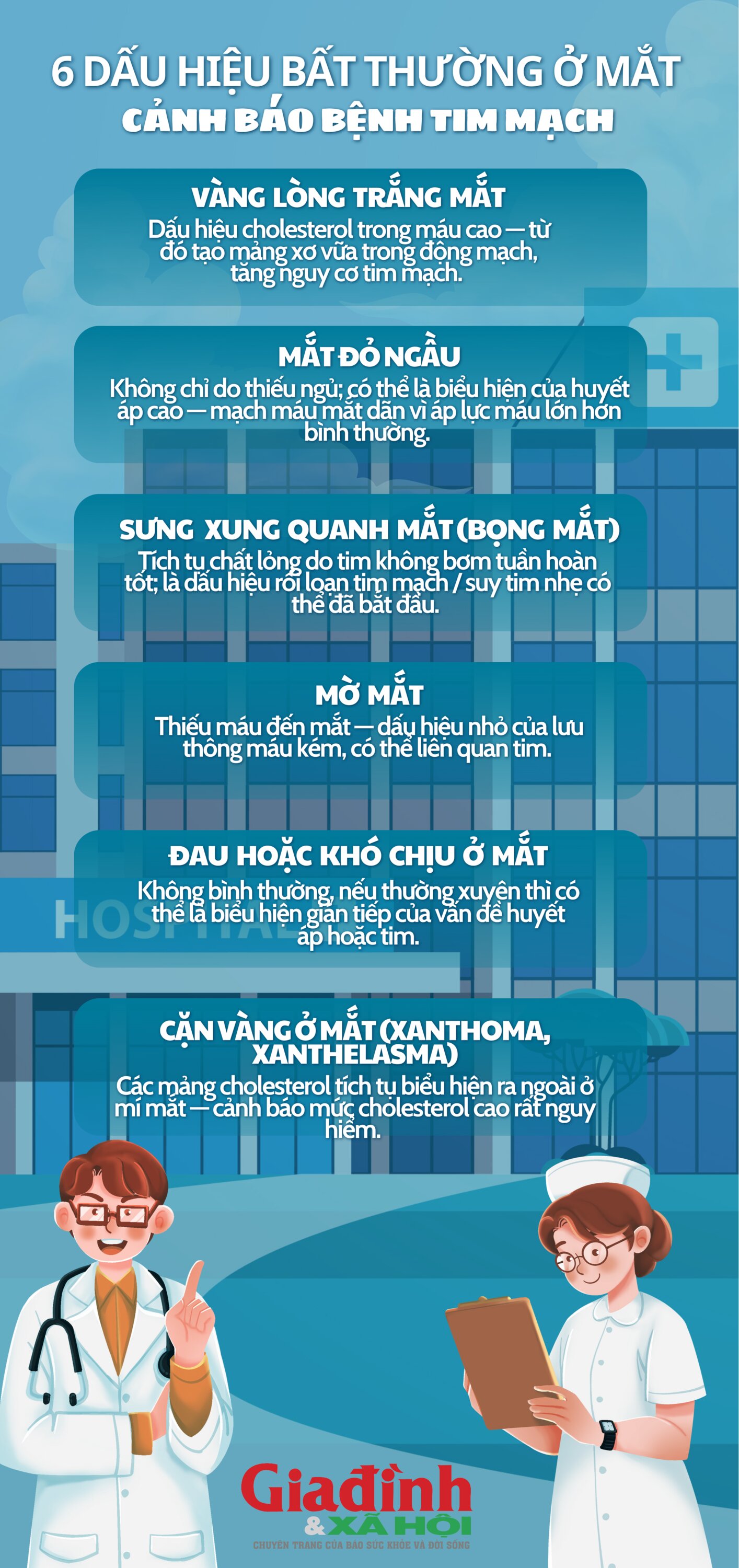 Đừng bỏ qua những thay đổi bất thường ở mắt như đỏ, vàng hay sưng bọng. Chúng có thể là tín hiệu cảnh báo sớm của bệnh tim