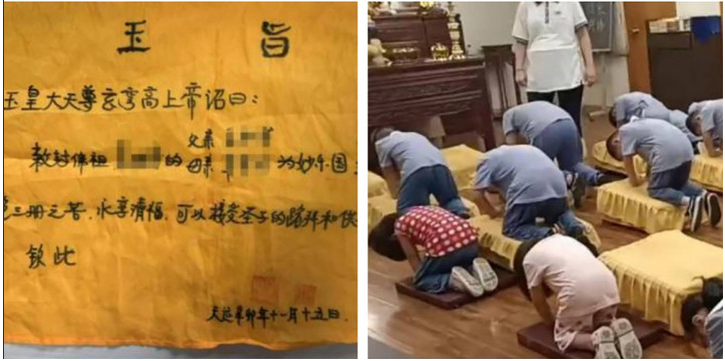 Cảnh sát triệt phá giáo phái Thiên Đạo Hồng Nguyên; thủ lĩnh Thượng Mưu Tăng, tự xưng Ngọc Hoàng, bị tình nghi phạm nhiều tội nghiêm trọng, bao gồm tấn công tình dục và lừa đảo. (Ảnh: Mạng lưới Chống giáo phái Trung Quốc)