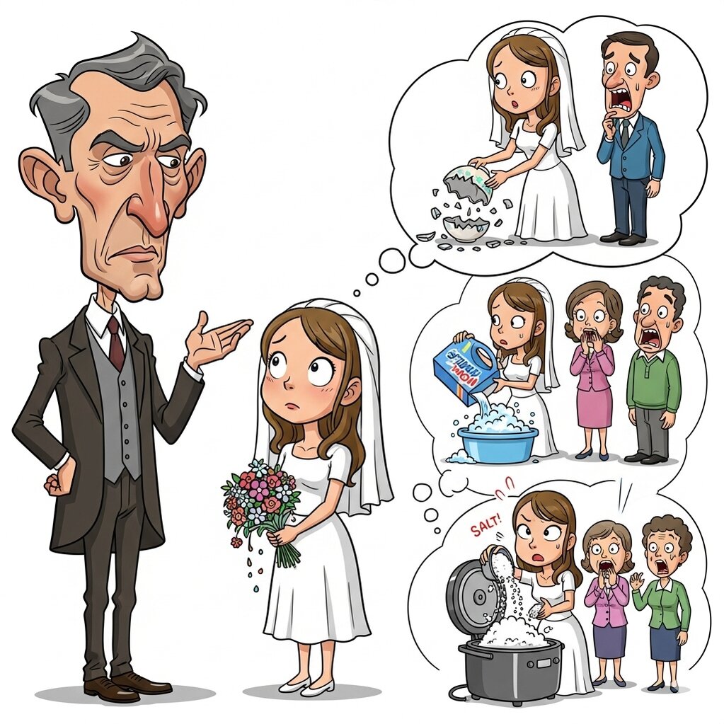 Nhất định phải tranh luôn giặt đồ, rồi đổ nửa túi bột giặt vào cho bố. Sau đó con tranh luôn cả nấu cơm, không cần biết trong nồi có bao nhiêu thức ăn, cứ mạnh tay đổ hẳn 5 thìa muối vào.