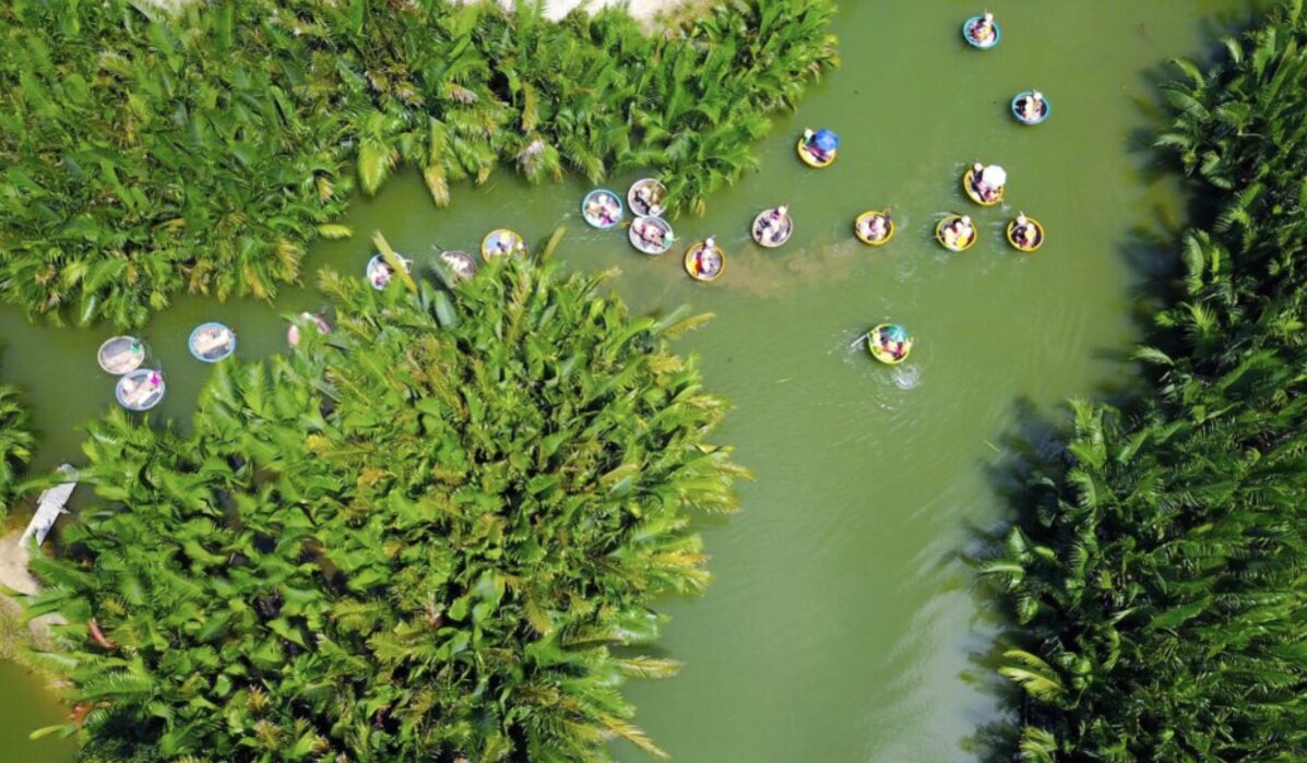 Cẩm Thanh được ví như một bức tranh đồng quê sống động, nơi những chiếc thuyền thúng tre lướt nhẹ trên dòng sông Thu Bồn, len lỏi qua hệ thống rừng dừa nước Bảy Mẫu – một khu rừng ngập mặn độc đáo có từ thế kỷ 18. Những tán dừa xanh mát, đung đưa trong gió, tạo nên một khung cảnh thơ mộng, khiến du khách như lạc vào một thế giới hoàn toàn tách biệt với sự xô bồ của đô thị. Ngồi trên thuyền thúng, dưới sự hướng dẫn của những người lái đò lành nghề, bạn sẽ được nghe kể về lịch sử vùng đất từng là căn cứ cách mạng trong thời kỳ chiến tranh, đồng thời chiêm ngưỡng hệ sinh thái đa dạng với những đàn diệc bay lượn và cá bơi lội dưới làn nước trong veo.