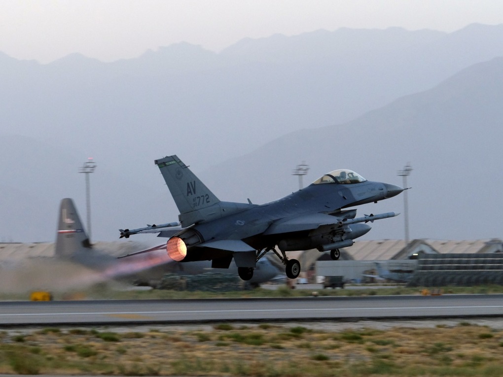 Tiêm kích F-16 Mỹ cất cánh từ căn cứ Bagram năm 2017. Ảnh: Reuters