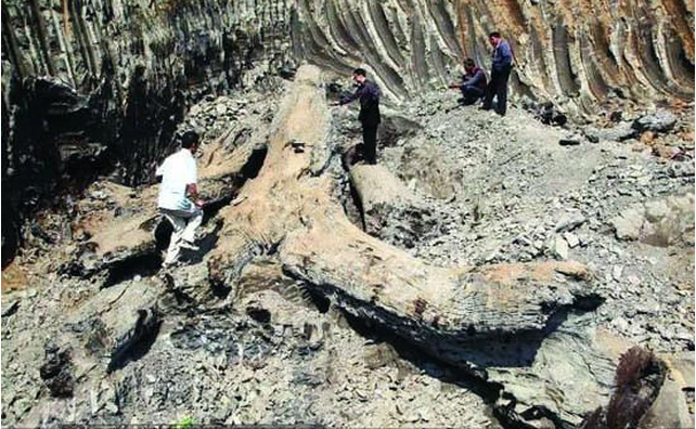 Khi đào sâu hơn, mọi người phát hiện bốn khúc cây lớn dưới lòng đất, cây lớn nhất có đường kính khoảng 2m và dài gần 20m. Để đưa những cây gỗ này lên, người dân phải đào một hố sâu hơn 10m. Khi các chuyên gia nhặt mảnh gỗ rơi ra, họ nhận thấy thớ gỗ rất rắn chắc và tỏa ra 1 mùi thơm thoang thoảng, khác hẳn gỗ thông thường.