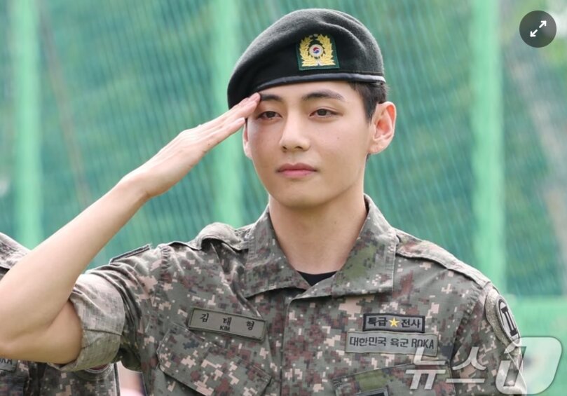 V sinh năm 1995, là thành viên nhóm nhạc hàng đầu Hàn Quốc BTS. Anh nhập ngũ vào tháng 12/2023. Thành viên BTS nộp đơn xin gia nhập và được nhận vào đơn vị phân công đặc biệt của Bộ Tư lệnh Phòng thủ Thủ đô Lục quân, đồng thời được bổ nhiệm vào Đơn vị Ssangyong thuộc Quân đoàn 2 của Lục quân ở Chuncheon, Gangwon-do. Nam ca sĩ vừa xuất ngũ hồi tháng 6.