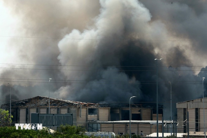Khói bốc lên sau vụ tấn công bằng tên lửa của Iran xuống thành phố Herzliya, miền Trung Israel ngày 17/6/2025. (Ảnh: THX/TTXVN)