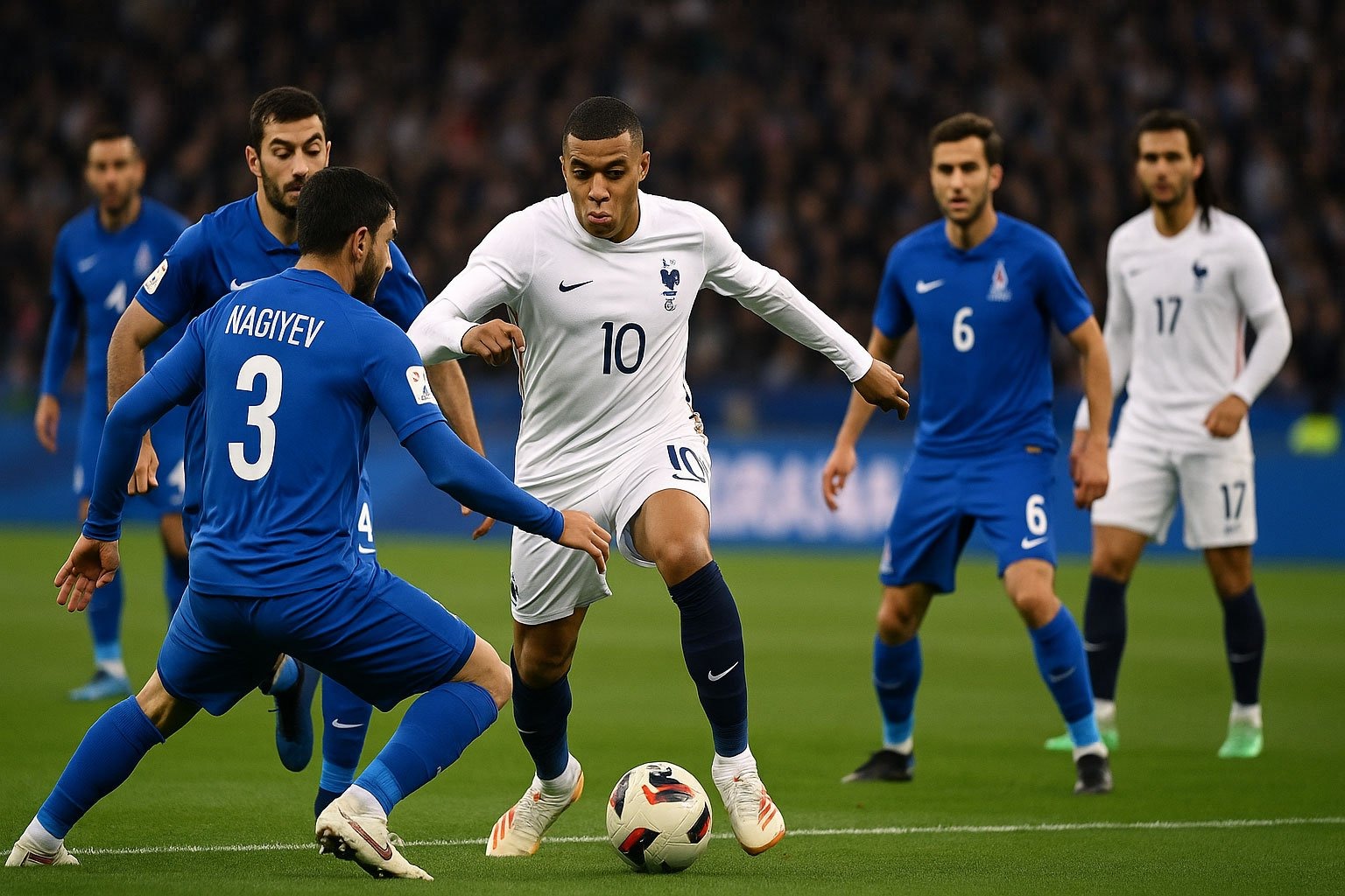 Với lợi thế sân nhà, ĐT Pháp chơi áp đảo và dễ dàng giành thắng lợi 3-0 trước Azerbaijan ở bảng D. Kylian Mbappe (45+2'), Adrien Rabiot (69') và Florian Thauvin (84') là những người điền tên lên bảng điện tử.