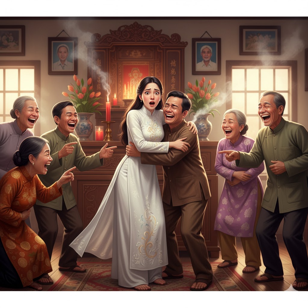 Cả nhà cười nghiêng ngả, còn mình đứng sững, mặt đỏ bừng không biết nên khóc hay cười!