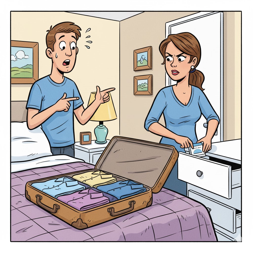 Trước chuyến công tác xa, chị vợ cẩn thận xếp quần áo, khăn mặt, bàn chải, tất cả gọn gàng vào vali cho chồng. Là người chu toàn, chị còn mở tủ, lấy hộp bao cao su ra và cẩn thận đưa cho chồng… hai chiếc.
