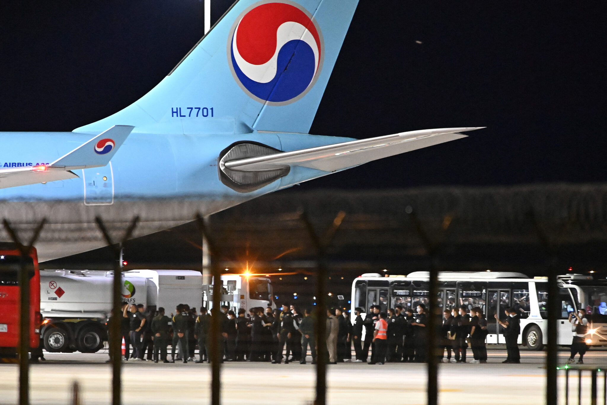 Chính phủ Nam Hàn đưa máy bay chở nhóm 100 nhân viên đặc nhiệm đến phi trường Techo, tỉnh Kandal, Cambodia, hôm 17/10 để đưa các công dân Nam Hàn trở về nước. (Ảnh minh họa: Tang Chhin Sothy/AFP qua Getty Images)