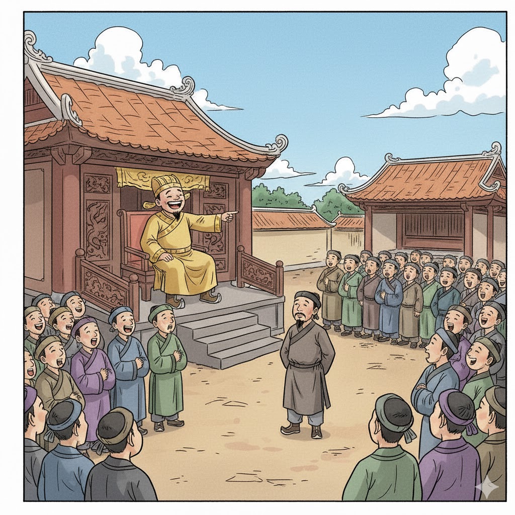 "Thưa bệ hạ, con phạm cả ba tội nên không biết đứng vào ô nào cho đúng."