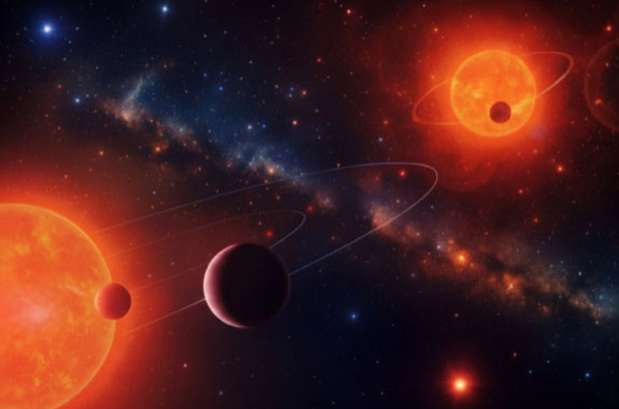 Ba hành tinh giống Trái Đất được phát hiện trong hệ sao gồm 2 sao lùn đỏ - Ảnh đồ họa: UNIVERSITY OF GRENOBLE ALPES.