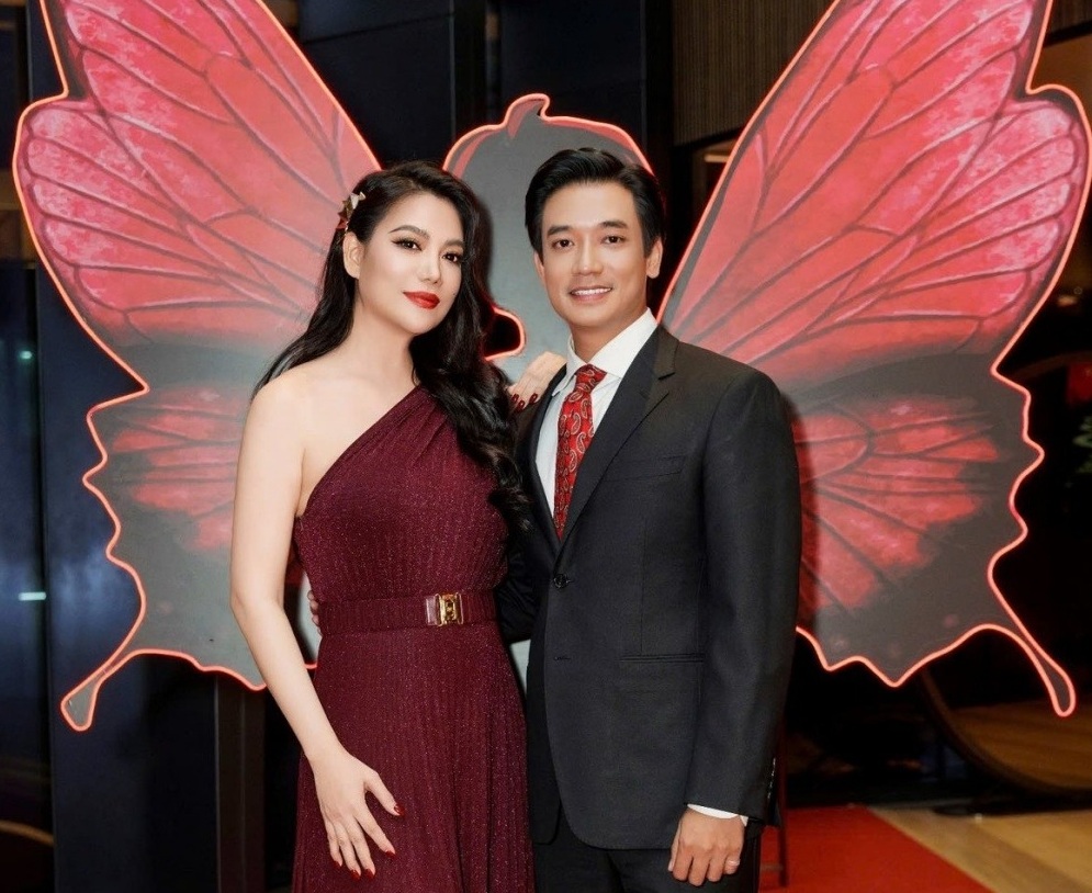 Diễn viên Trương Ngọc Ánh bên bạn diễn Samuel An ở buổi giới thiệu phim "Chiếc kén", hồi tháng 4 tại TP HCM. Ảnh: TNA Entertainment