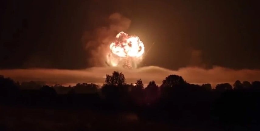 Ảnh chụp màn hình cho thấy vụ nổ tại kho đạn dược của Nga ở Markyne, tỉnh Donetsk vào ngày 12 tháng 12 năm 2024. Nguồn: Espreso.