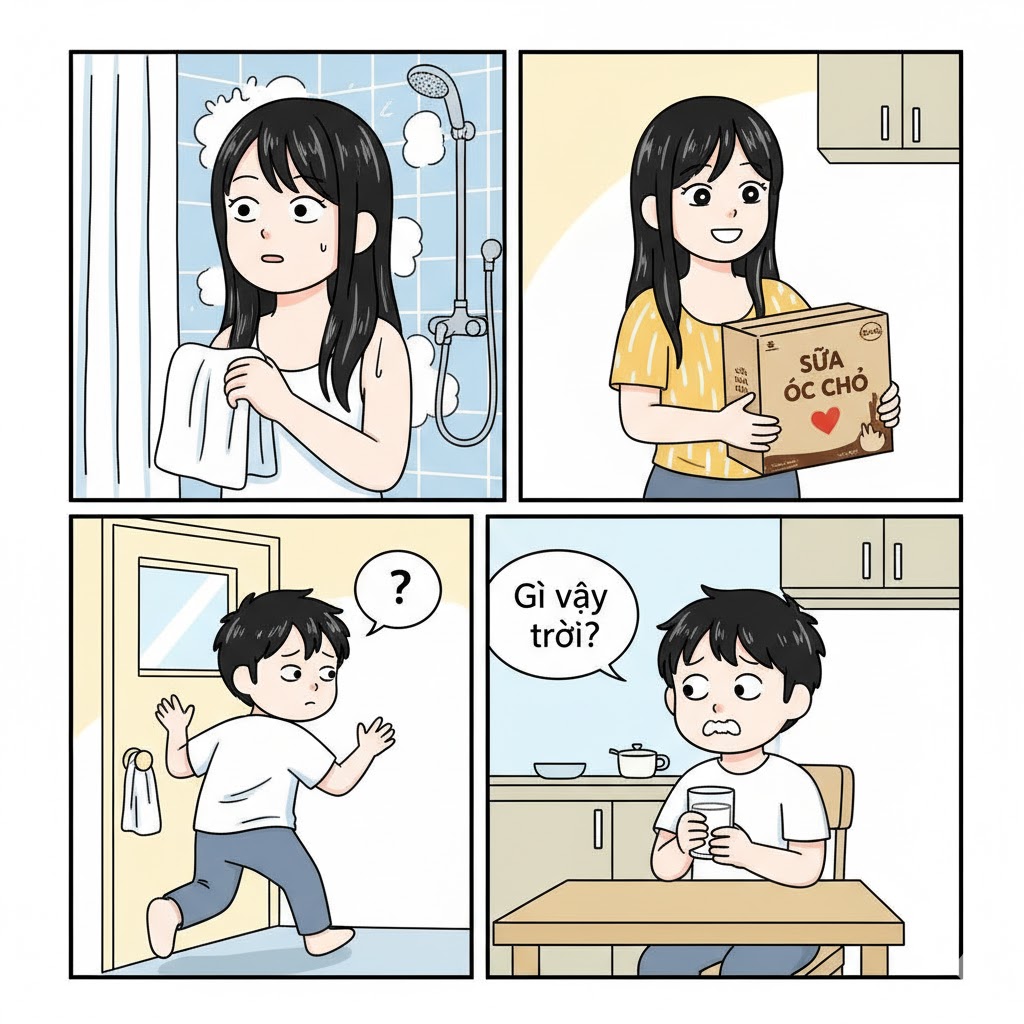Sáng hôm sau, nhỏ bạn đem qua nhà mình hẳn một thùng sữa óc chó, kêu: