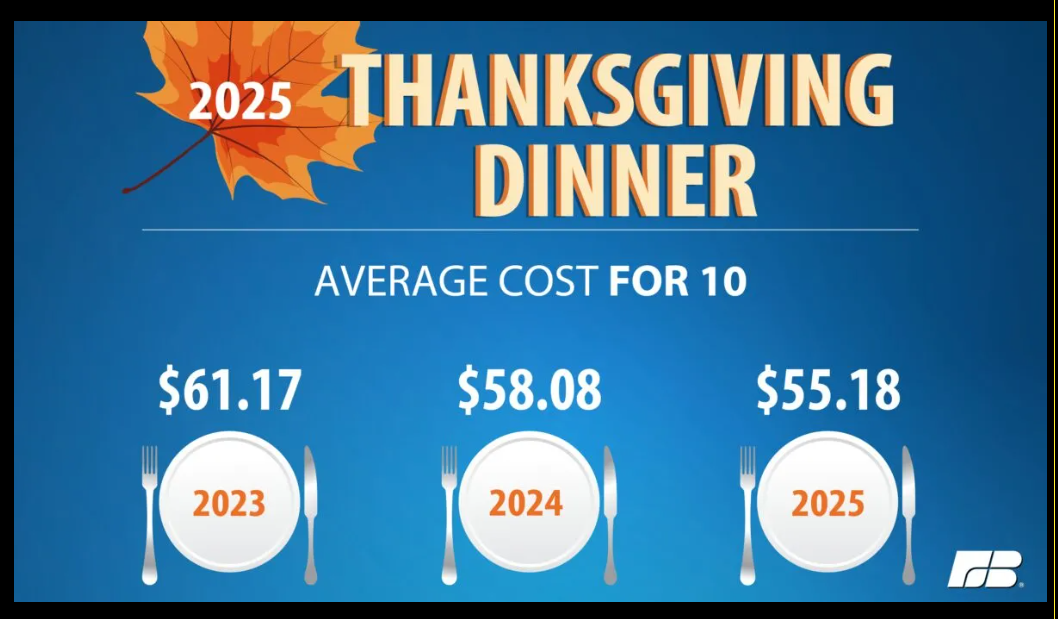 This drop in turkey’s cost impact comes from both falling turkey prices and rising costs of sides. A 16-pound turkey will cost an average of $21.50, down 16% from 2024. While fresh turkey prices continue to rise as the poultry sector fights highly pathogenic avian influenza (HPAI), prices for frozen turkeys – the most commonly used for Thanksgiving dinner – continue to fall. On top of this, demand for turkey continues to drop outside of Thanksgiving with the average American consuming only 13 pounds of turkey per year, nearly 3 pounds less than six years ago.