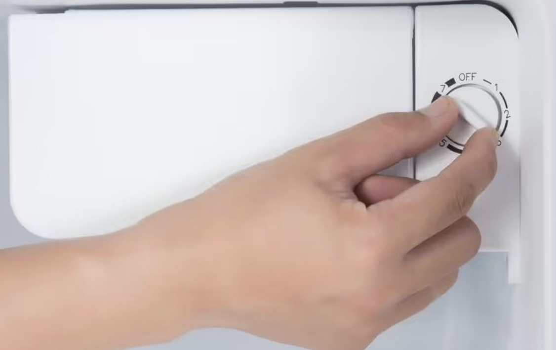 “Hãy vặn núm theo bất kỳ hướng nào cho đến khi máy nén (phần mô-tơ màu đen ở phía sau tủ) bật hoặc tắt.