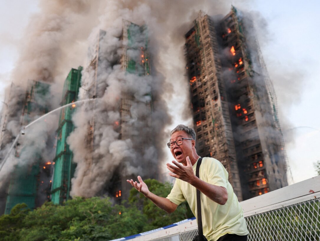 Được biết, người đàn ông này họ Wong. Ông đang vô cùng tuyệt vọng, gục ngã và khóc nức nở bên ngoài tòa tháp đang cháy vì vợ ông đang bị mắc kẹt bên trong tòa nhà xảy ra hoả hoạn.