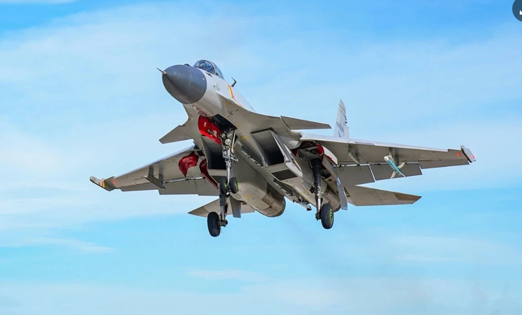 Tiêm kích hạm J-15 Trung Quốc bay huấn luyện ngày 29/8. Ảnh: PLA.