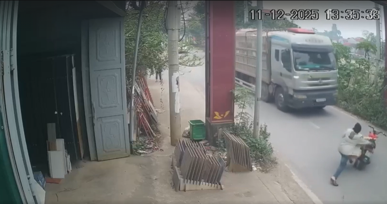 Khoảnh khắc Minh đẩy cảnh sát giao thông vào gầm xe tải đang chạy.