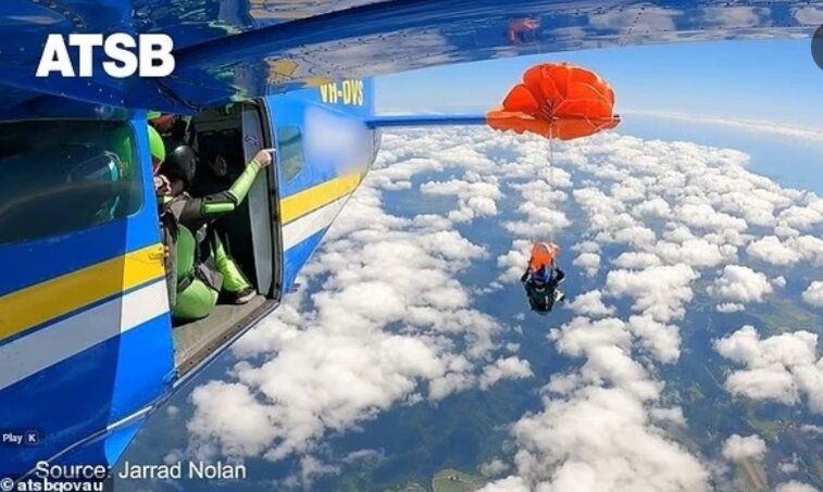 Cục An toàn Giao thông Australia (ATSB) đã công bố đoạn video kịch tính vào hôm 11/12, cho thấy người nhảy đầu tiên di chuyển ra cửa cuốn của máy bay để vào vị trí.