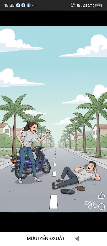 Chồng: Alo em ơi... Anh đi nhậu về gần tới nhà thì bị ngã xe.