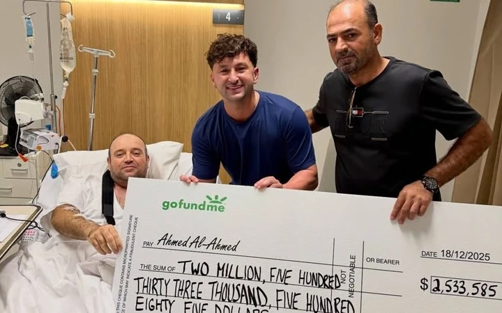Ahmed al-Ahmed, người đã liều mình ra tay trấn áp một tên khủng bố xả súng tại bãi biển ở Bondi (Úc), hôm 19/12 đã nhận được số tiền quyên góp từ cộng đồng ngay trên giường bệnh.