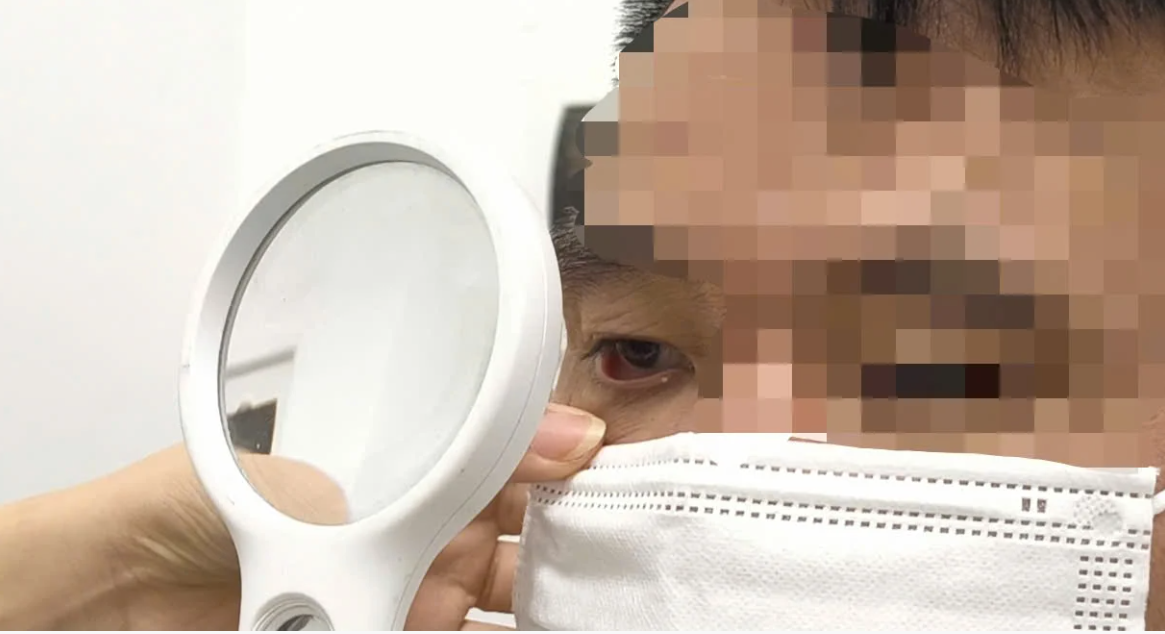 Bác sĩ khám mi mắt cho bệnh nhân vì rận mu có thể cũng hay bò lên mi mắt. Ảnh BVCC