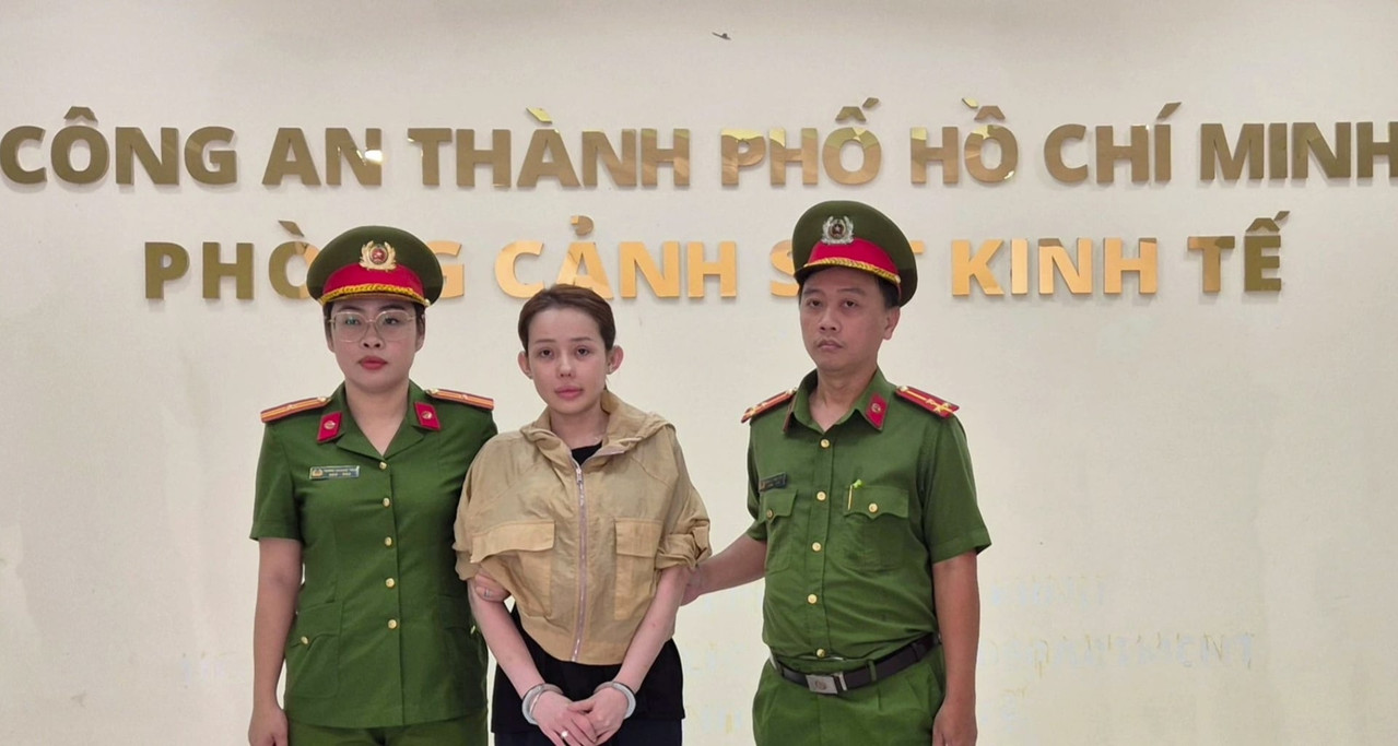 Hoa hậu Nguyễn Thúc Thùy Tiên bị bắt giữ. (Ảnh: CA TPHCM)