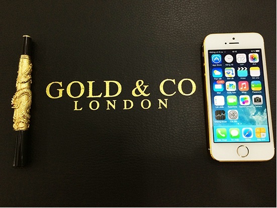 Một cửa hàng di động tại Hà Nội vừa ra mắt phiên bản iPhone 5S mạ vàng 24 karat khảm rồng nguyên khối 18 karat.