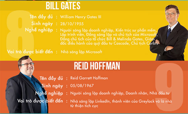 Với tầm nhìn chiến lược cùng những nỗ lực phấn đấu, họ đã vươn lên trở thành những nhà tỷ phú thế giới. Có những tỷ phú tuổi dưới 30 như ông chủ Facebook Mark Elliot Zuckerberg (sinh năm 1984), Giám đốc điều hành của Dropbox Andrew W.Drew Houston (sinh năm 1983) và rất nhiều người nằm trong top những người giàu nhất thế giới như Bill Gates (nhà sáng lập Microsoft), Lawrence Joseph Ellison (giám đốc điều hành của tập đoàn Oracle)...