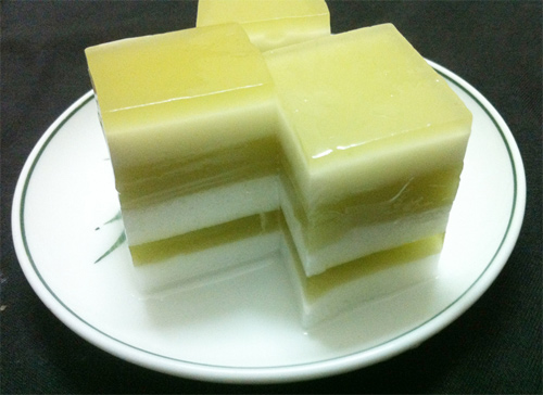 Lưu ý: Khi lớp thạch này hơi đông một chút, bạn mới đổ lớp thạch kia chứ không đổ ngay khi chưa kịp đông vì chúng sẽ dễ hòa lẫn và không tạo lớp. Bạn cũng không nên để lớp thạch nào quá đông mới đổ lớp kia vào vì như thế lại làm mất tính liên kết giữa các lớp thạch.