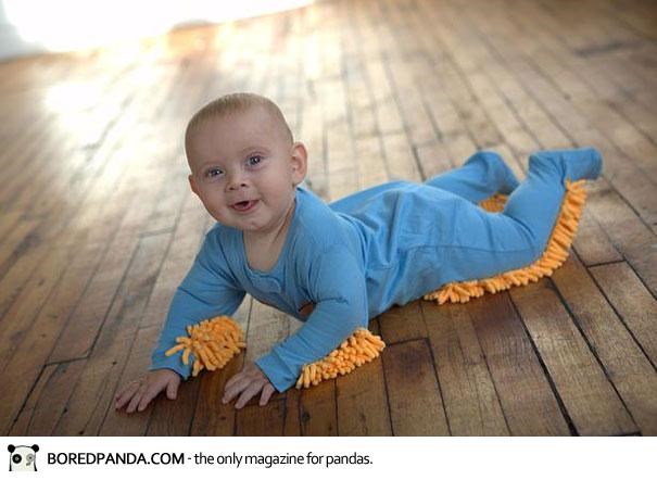 Áo kiêm giẻ lau sàn cho bé. Để khắc phục nỗi lo của các mẹ khi có con đến tuổi tập bò trườn, người ta đã nghĩ ra sáng chế có “1-0-2” này.