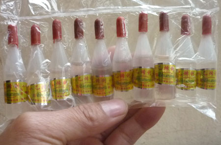 Quan sát trên lọ thuốc, không thấy bất cứ thông tin nào về xuất xứ, liều dùng, hạn sử dụng… ngoài những dòng chữ tiếng Trung Quốc in cẩu thả trên loại chất liệu rẻ tiền.