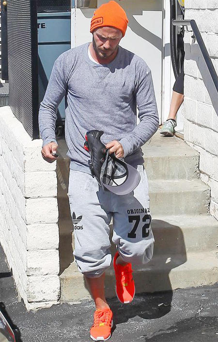 Hôm 10/4, Becks được trông thấy rời khỏi phòng tập SoulCycle nổi tiếng ở Los Angeles một mình. Ông bố bốn con dù mặc bộ đồ thể thao màu xám nhưng vẫn nổi bật nhờ chiếc mũ len và đôi giày màu cam rực rỡ.