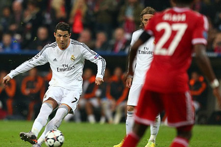 Cú sút phạt ấn định thắng lợi 4-0 của C. Ronaldo, anh đã có 16 bàn ở Champions League năm nay
