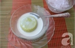 Lúc này, vớt lá galatin ra để vào tô khác. Lấy 50ml nước sôi đổ vào tô đựng gelatin cho tan hết.