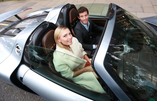 Ngồi bên cạnh Maria Sharapova ở ghế lái chiếc Porsche 918 Spyder không ai khác là tay đua Công thức Một Mark Webber.