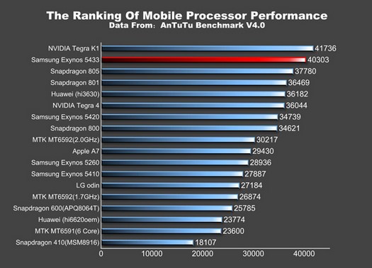 Với phiên bản chipset Exynos 5433, điểm số AnTuTu tăng vọt lên đến 40.303, còn Snapdragon 805 đạt mốc 37.780. Thông số cấu hình còn lại của Note 4 tương đối giống nói với màn hình 5.7 inch độ phân giải QHD 1440x2560 pixel, 3GB dung lượng RAM và 32GB bộ nhớ trong. Camera chính 16MP và phụ 3.68MP. Cả 2 đều sẽ chạy Android 4.4.3 mới nhất.