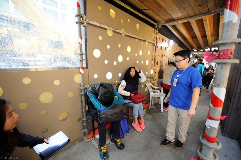 . Rạng sáng khoảng 4 giờ, nhân viên Apple chăng dây chặn những ai chen vào nhưng rất tiếc là họ làm điều đó quá muộn