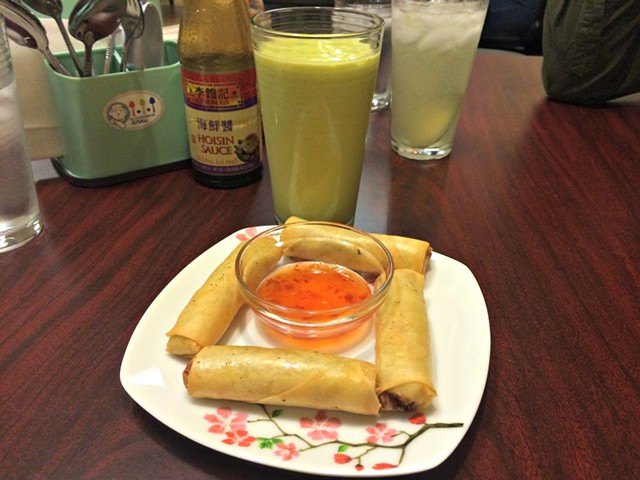 Đêm qua, bơ đã chín ở phía nam, nhưng tôi sẽ viết nó ra như là thời gian tồi tệ. Làm thế nào có thể tôi không xem xét như thế nào uống kết hợp với chả giò chiên ($ 3.50)? Các cuộn trứng đã nặng trên bắp cải và thịt lợn, đem lại cho họ một hương vị tươi hơn hầu hết các loại, mà là như vậy thường bị chi phối bởi bún. Một chút gừng và muối..