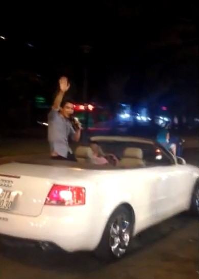 Hình ảnh thanh niên Sài Gòn ngồi xe Audi mui trần đi bán kẹo kéo từng gây bão trên mạng xã hội tại Việt Nam. Ảnh: Cắt từ clip.