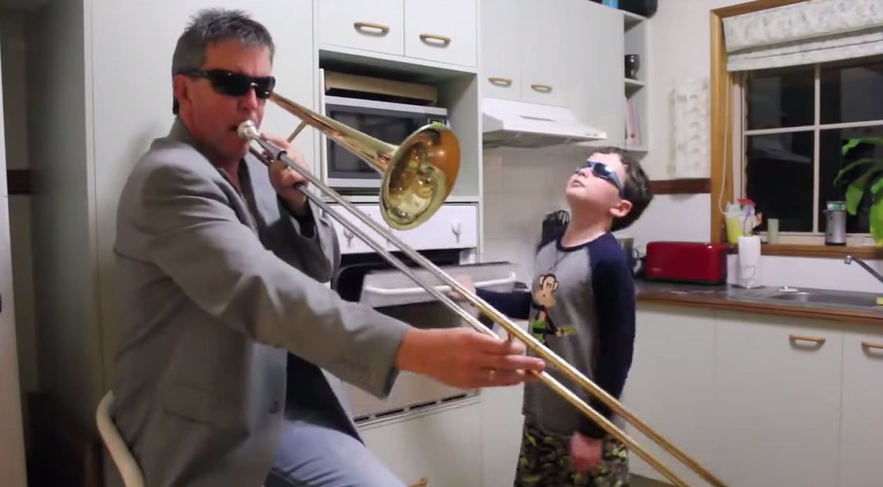Một màn solo ngắn từ người đàn ông chơi trombone cùng con trai mình sáng tạo ra quả là một sự kết hợp tuyệt vời.