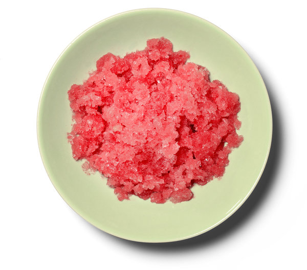 3. Đỗ hỗn hợp vào cốc hoặc bát và cho vào tủ đá khoảng 2 tiếng. Dùng dĩa để chọc và đập vụn dưa hấu mỗi 30 phút. Giờ thì dưa hấu sẽ rất giòn.