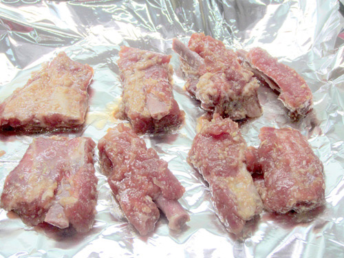 Ướp sườn với tất cả gia vị.